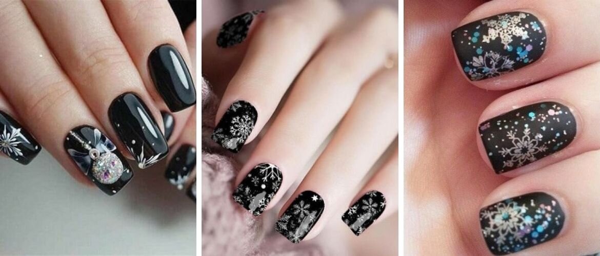 Черный новогодний маникюр: модные варианты нейл-дизайна