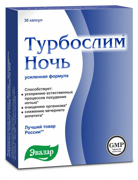 Препарат для похудения «Турбослим» – биологически активная добавка, способствующая, если верить описанию, быстрому и безболезненному похудению. Существует несколько разновидностей этого средства, предназначенных для приема в разное время суток – их состав отличается. «Турбослим день» и «Турбослим ночь» Капсулы «Турбослим день» и «Турбослим ночь» принимаются в комплексе, в течение 30 дней. Первый из них выводит из организма лишнюю жидкость, обладает противоотечным действием. Кроме того, содержащиеся в нем вещества способствуют сжиганию жиров и снижают аппетит, борясь, тем самым, с главной причиной лишнего веса – перееданием. Следует упомянуть еще один интересный феномен: у тех, кто принимает эти капсулы, снижается тяга к лакомствам. В состав дневного препарата входит экстракт плодоножек вишни, выводящий из организма лишнюю жидкость и гуараны, оказывающий тонизирующее действие, сжигатель жира L-карнитин, кроме того, пиколинат хрома и инулин. Капсулы «Турбослим» для ночного применения со