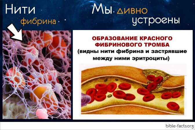 💙 Как удивительно Господь все придумал. ▫ - Чтобы кровь не покинула наше тело (а ее не очень то и много) при разных травматических ситуациях в роль вступают малюсенькие тромбоциты. ▫ - Тромбоциты устремляются к разрыву сосуда и приклеиваются к его стенкам и друг к другу, образуя пробку. При этом тромбоциты выделяют особые вещества, называемые фибрином. ▫ - Фибрин образует длинные нити сетки крест-накрест пересекающие рану. Эти нити улавливают из кровотока эритроциты и тромбоциты, укрепляя тем самым тромб. Засыхая, сгусток крови превращается в корочку на поверхности кожи. ▫ - Время, за которое происходит свёртывание крови, составляет от 14 до 21 секунды. Известно, что в организме человека сосуществуют две системы. Одна способствует скорейшему свёртыванию крови, а вторая этому препятствует. ▫ - Если обе эти системы находятся в равновесии, то кровь будет свёртываться при повреждениях сосудов, а внутри них будет оставаться жидкой. Это удивительно! 📘 - Да, тело человека — это замечательны