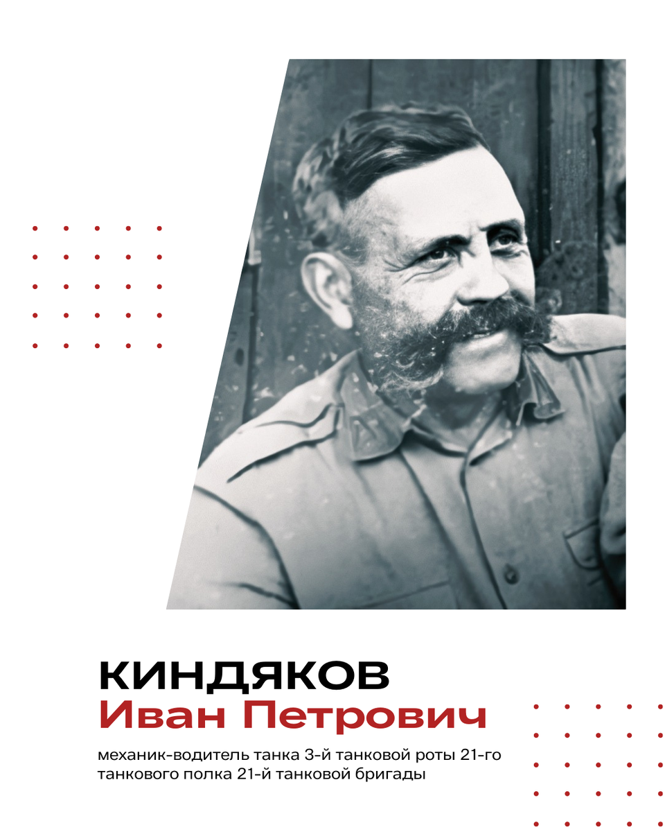 25 октября 1941 года командованием 21-го танкового полка красноармеец Киндяков Иван Петрович был представлен к званию Героя Советского Союза.
