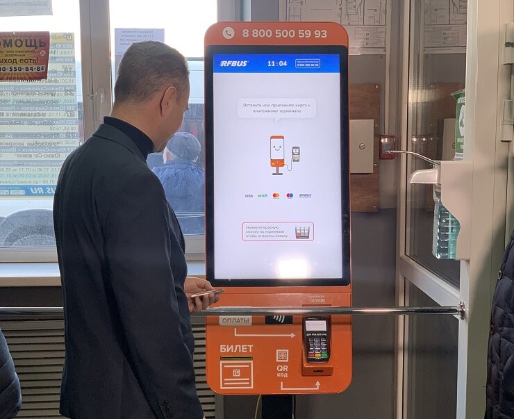 На автовокзале Южно-Сахалинска начал свою работу билетный автомат, который предлагает пассажирам междугородних автобусов возможность приобретать проездные документы в режиме самообслуживания. Терминал получил фирменное название «КОРОБАС». Билетный терминал интегрирован с программным обеспечением федеральной транспортной системы по продаже междугородних и пригородных билетов на автобусы RFBUS. Софт не зависит от иностранных сервисов так как серверное оборудование располагается на территории России. Интерактивный терминал с большим сенсорным экраном позволяет не только покупать и сдавать билеты, но и получать информацию о расписании движения автобусов и выбирать места в автобусе. Новое оборудование должно уменьшить нагрузку на работу кассиров в периоды высокого пассажиропотока, а также сократить очереди в кассу. В точках с низким количеством пассажиров, где нет возможности инкассации, а содержание кассира и помещения убыточно, билетный терминал может стать удобной альтерна