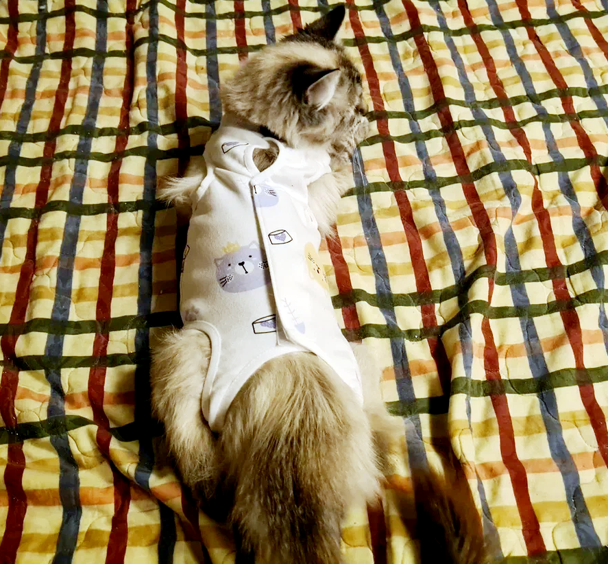 Хэштех #голубоглазая-фенечка Решила вчера примерить на Фенечку попону. Уже другую. Первую я так "удачно" куда-то положила, что быстро найти не смогла. 😁 И раз доктор сказал, что лучше бы попону надеть, чтобы не разлизывала швы после стерилизации - решила сделать это... Но сняла в итоге. Решив, что надену только если край как нужно будет и Феня и правда начнёт разлизывать. Фенёк отказывается ходить в попоне. 😁