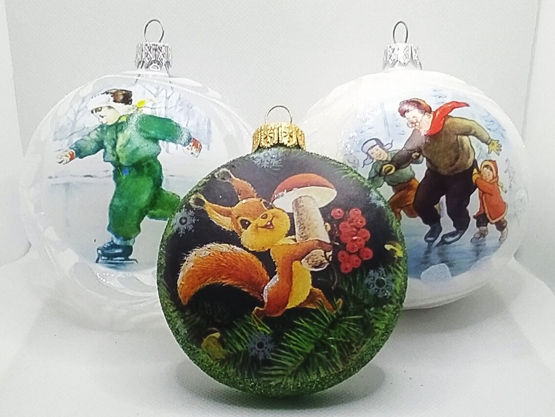 Купила шары на ёлку с сюжетами открыток Зарубина, Фридмана и Матюх