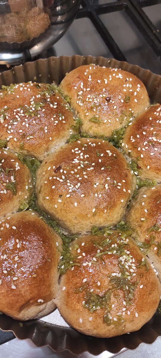 Через 30 минут пышки поднимутся, смазываем их молоком и посыпаем кунжутом(по желанию).