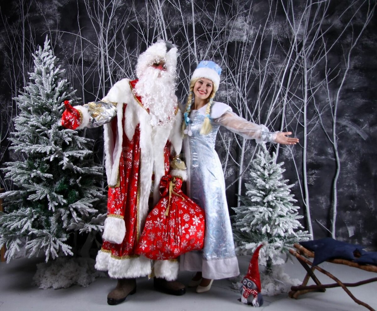 Главное, опрятный внешний вид: расчесанная борода без следов кофе, у Снегурочки – косы и невульгарный макияж. Выбирайте традиционные костюмы и реквизит: клиенты любят, когда Дед Мороз и Снегурочка «как из сказки». Лучше всего, если дедушка будет высоким и крупным, а его помощница — молодой и худенькой.