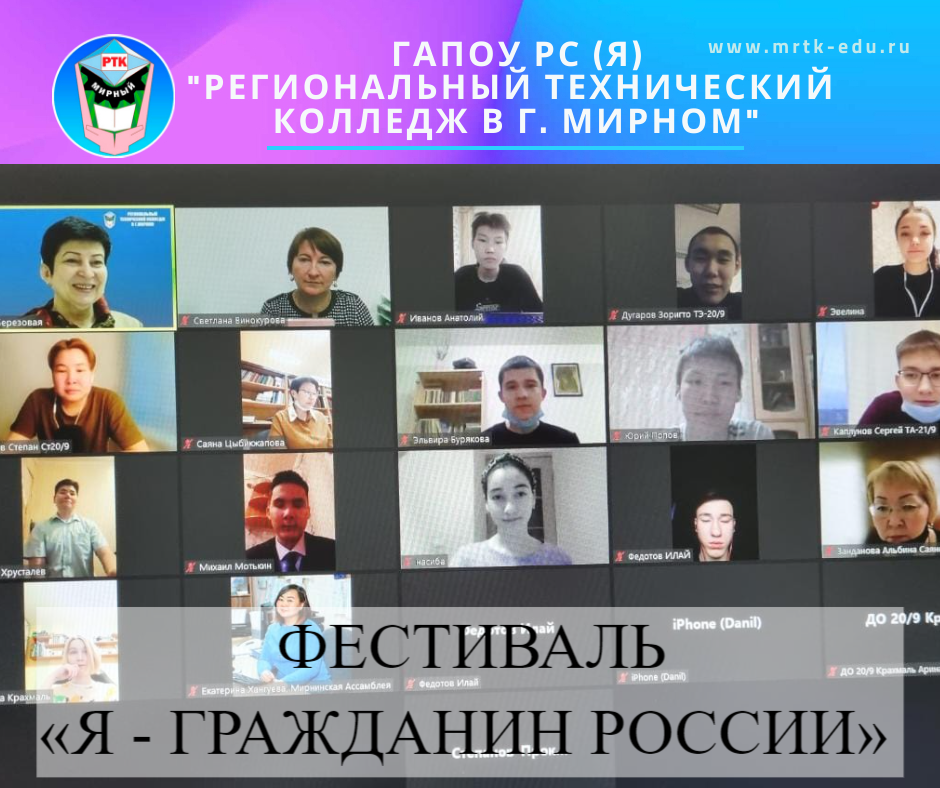 10 декабря 2021 г. в «Региональном техническом колледже в г. Мирном» состоялся ежегодный районный фестиваль «Я - гражданин России», посвященный Дню Конституции в Российской Федерации.