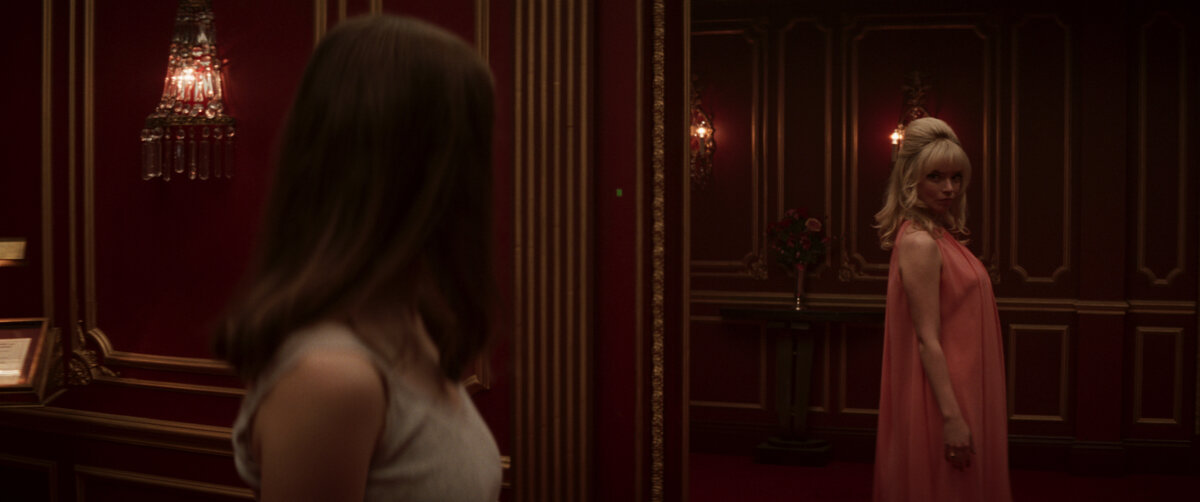 Сегодня, когда к услугам кинематографистов цифровой композитинг, подобные сцены мало, кого удивляют. Все время думаешь: «ну это просто композ, все просто». Восторг возникает, когда узнаешь (а просто глазами этого не увидеть!), что все снято прямо на площадке, и бОльшая часть трюка – это олдскульный эффект «в камере». Сон Элоизы начинается с того момента, когда она укрывается одеялом с головой, чтобы не видеть моргающих за окном неоновых огней. Пролет камеры под одеялом – это цифровая симуляция ткани. Героиня проходит через темный коридор (метафора попадания в сон) и оказывается на лондонской улице. И, конечно же, Café de Paris снимали не там, где заведение было на самом деле, просто потому что выбранная кинематографистами локация была доступнее и шире, и лучше удовлетворяла нужды съемочного процесса. Художник-постановщик Маркус Роулэнд проделал отличную работу, декорируя ее историческими деталями. Помимо реальных винтажных автомобилей, в сцену были добавлены и цифровые машины, а также
