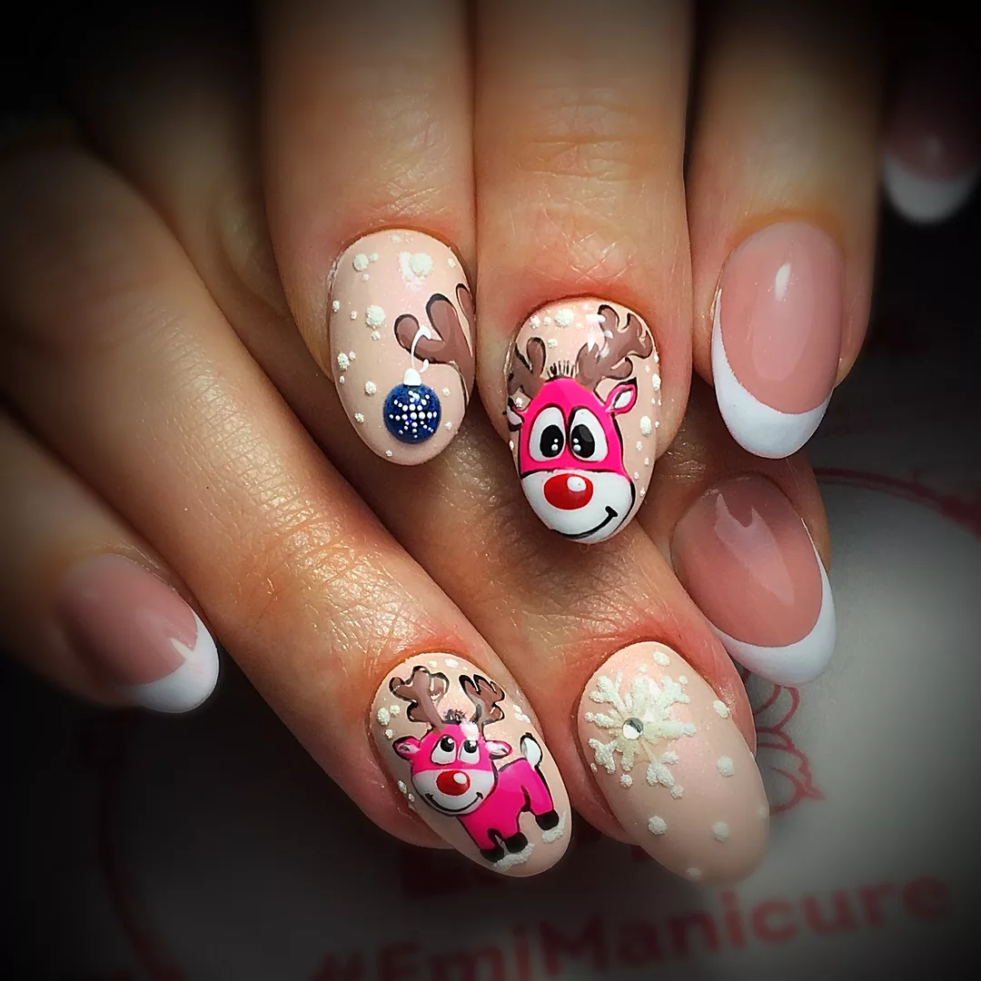 Новогодний маникюр с оленями: нестареющий тренд, дизайн, фото
