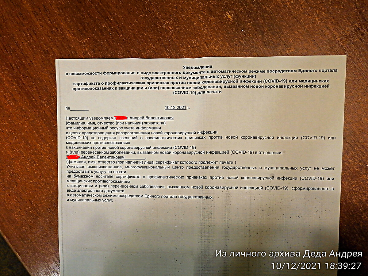 Недо - в отношении моих прав, гражданин - в обязанности платить налоги. И так, я переболел ковидом. Сам пенсионер МВД. Мент, как говорят. В полицию не переатистовывался. Естественно лечился по месту жительства под "присмотром" медперсонала поликлиники УВД. 19 ноября, когда мне закрывали больничный лист, спросил: "Передадут ли мои данные в госуслуги для получения сертификата переболевшего?". В очередной раз услышав, что нет, т.к. поликлиника не подключена к какой то там электронной системе, спросил, что мне делать в этом случае? В ответ, мне выдали справку и посоветовали с ней сходить в МФЦ, может чего и получится. Придя домой, через интернет, записался на приём в МФЦ. Аж на 10 декабря. Это было ближайшее свободное время. 10 декабря, как штык прибыл на место на полчаса раньше назначенного времени. Ожидал столпотворения, а там.... ТИШИНА!!! Пара посетителей и все, то-ли на 15 или 16 кабинок. Сотрудники кучкуются на своих рабочих местах по 2-3 человека, видно в группах по и