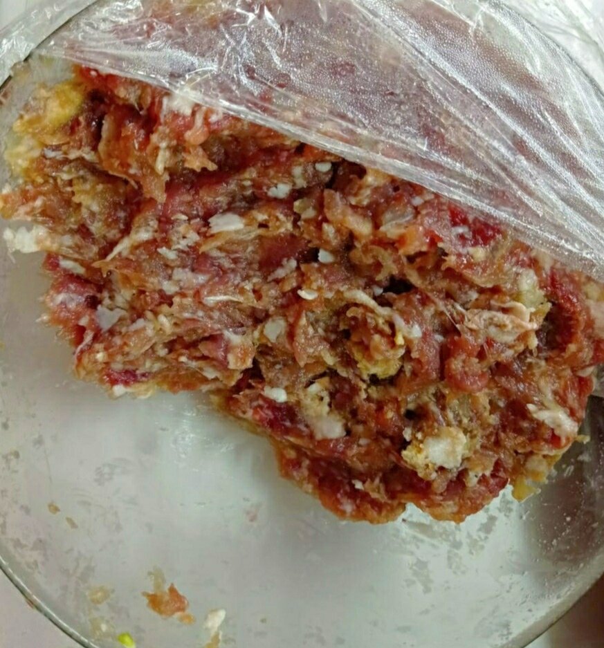 1. На ночь оставляю мороженую свинину вымачиваться в холодной воде.