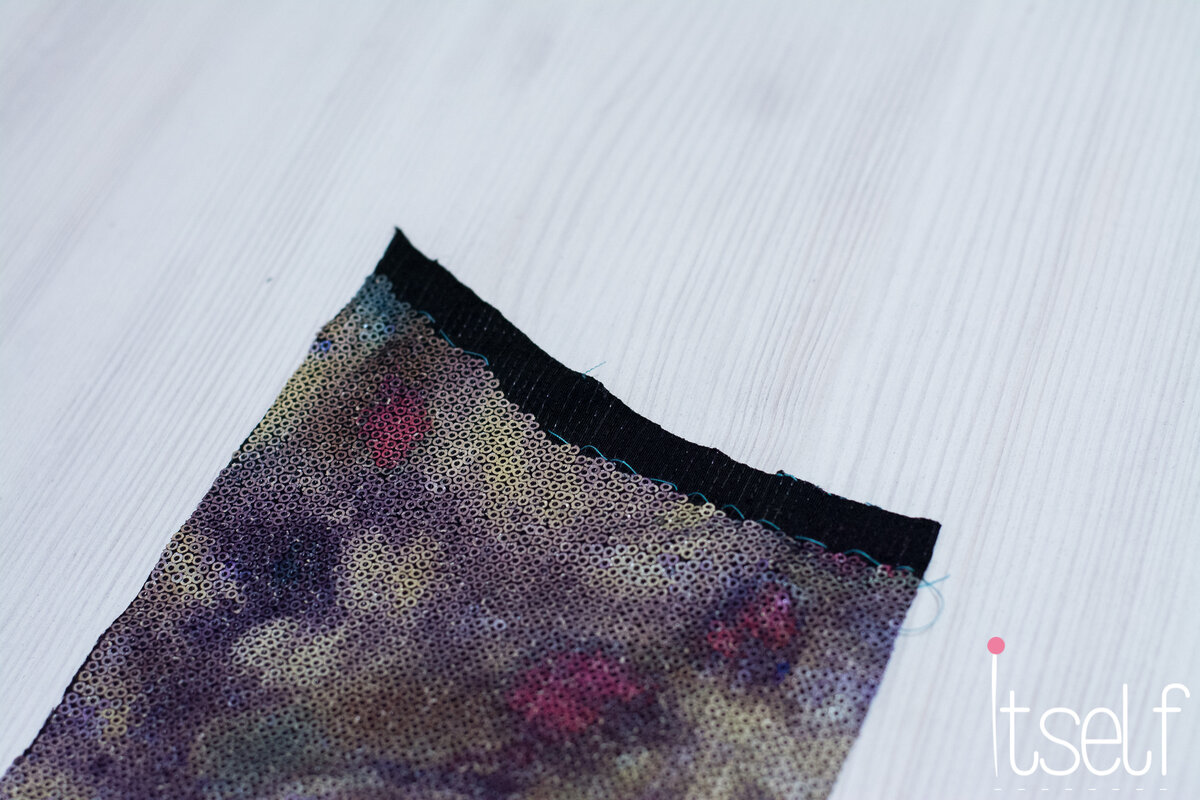 Как обработать горловину или пройму в материале с пайетками