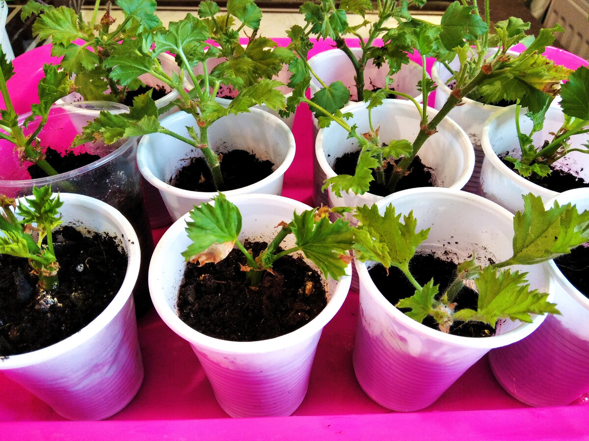 Вы спросите зачем пересаживать зимой, травмировать и так ослабленные черенки? Меня зовут Елена и я приветствую вас на моем канале о цветах домашних и садовых. Делюсь своими наблюдениями и опытом выращивания. Анализирую ошибки и радуюсь успехам. Присоединяйтесь. Неделю у нас держались морозы за -25. Мои пеларгонии зимуют на лоджии, где я стараюсь регулировать температуру в пределах +10 градусов. Черенки пеларгонии укореняла в первых числах октября. Два месяца назад, в маленькие стаканчики. На фото уже прижившиеся черенки с новыми листочками. И вот поволновавшись во время морозов, я решила что им холодно в таких маленьких стаканах. Земли мало, корни уже наросли и могут подмерзать, если морозы еще будут возвращаться, а температура на лоджии упадет до +5 например. Вот и приняла решение перевалить самые вытянувшиеся в стаканы побольше. И заодно посмотреть, в каком состоянии корни. Потому что даже в прозрачных стаканах их не вижу. За два месяца должны уже быть. Корни на двухмесячном че