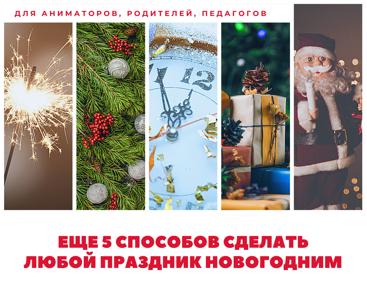 Продолжаем превращать обычный праздник в новогодний почти без усилий и лишних затрат. Первые пять способов можно найти тут . Способ № 1. Используйте больше снега. Мы не призываем вас засыпать площадку настоящим снегом. Подумайте, что может сыграть роль снега? Например, бумага, вата, белый поролон, белые ткани, традиционный новогодний “дождик”… Посмотрите внимательно вокруг себя и вам обязательно в голову придут еще варианты. Способ № 2 Замените главную идею, на которой строится ваша программа, на новогоднюю. Опять-таки вариантов гораздо больше, чем обычная пропажа или поиск новогодних подарков или заблудившийся и подтаявший Дед Мороз. Устройте мозговой штурм! Но если вариантов не найдется - спросите у нас. Мы обязательно подскажем. Способ № 3 Используйте адаптированные зимние игры. Составьте список традиционных зимних и новогодних развлечений. Адаптируйте их под площадку, на которой будет проходить праздник и используйте. Напомним вам самый простой пример: лыжи, которые легко превр