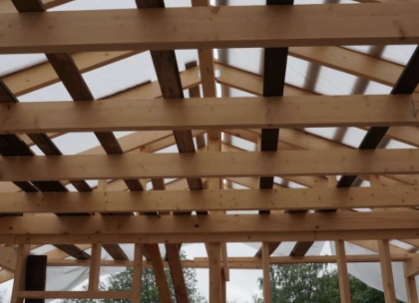 Крыша дома все нюансы стройки Следующим этапом была крыша. Лето выдалось дождливое, лило постоянно, весь материал приходилось хорошо закрывать. Чтобы спокойно работать нужно было закрыться. Собрали стропильную систему, по стропилам натянули подкровельную мембрану, прижали контробрешеткой. Крыша казалась не такой высокой с земли, но это не когда ползаешь по стропилам сверху. Соседи с опаской смотрели на нас с дороги. С обозначенной крышей стало похоже уже на домик. Продолжение стройки: Снизу подшили платформу досками, доски от старого нашего дома, добра этого было много. Ввели воду в дом, утеплили трубу снаружи, сделав короб из пеноплекса, так же в ней положен потом теплый кабель. Начали разводить коммуникации по потребителям. Кроме санузла со стиралкой планировалась еще кухня с раковиной и посудомойкой. Дальше начали подшивать полы оцинкованной сеткой от мышей. Она проложена везде и прибита скобами.