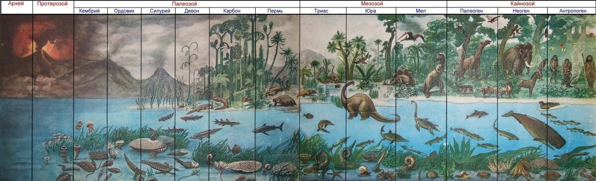 Развитие жизни на Земле до современности заняло огромное количество времени. В данной статье-презентации я хочу кратко пройтись по всем ключевым моментам развития жизни на нашей планете. Возникновение жизни Первая молекула, которая была способна к самовоспроизведению, делению и обмену веществ — молекула РНК. Именно с нее и началось самое первое возникновение жизни. РНК стало отправной точкой для того, чтобы жизнь на планете стала появляться и развиваться. Докембрий (криптозой) Докембрийский период, или же криптозой, длился почти 4 млрд. лет. Во время него произошли значительные изменения, такие как: остыла земная кора, появились океаны и примитивная жизнь. Докембрий делится на 3 эона. В это время только зарождалась первая и примитивная жизнь, ее следы в нашем мире можно встретить крайне редко. Фанерозой Фанерозой начался примерно 540 млн лет назад и продолжается в наше время. Во время фанерозоя появлялись и умирали множество созданий природы, такие как: огромные насекомые или диноз
