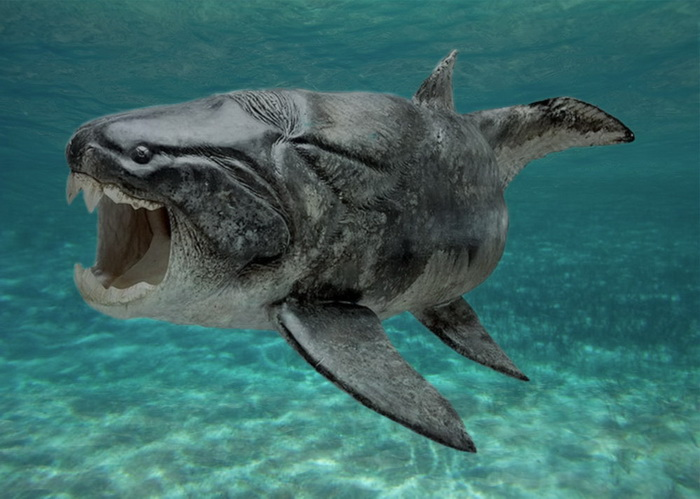 Дунклеостей - это самый ранний крупный хищник, известный науке. Считается, что "бронированная" доисторическая рыба была рекордсменом по силе укуса. Её уникальная челюсть позволяла охотиться даже на тех, кто был крупнее её размером, в том числе и на примитивных акул. Пасть дунклеостея распахивалась всего за 0.02 секунды, благодаря чему жертву буквально засасывало внутрь. Вместо зубов у этой рыбы были два костяных лезвия, которые с силой в два раза большей, чем у белой акулы, впивались в добычу. У той, как понятно, не было ни единого шанса на спасение.
