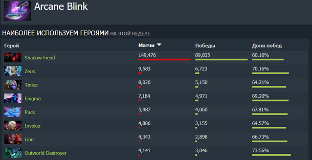 В Dota 2 несколько десятков различных предметов для разных стадий игры, ролей и ситуаций. Естественно, не все артефакты одинаково популярны, поэтому есть вещи, которые остаются невостребованными у большинства персонажей. Однако есть ну совсем уж элитарные предметы — настолько, что собирает их только пара героев. Arcane Blink Самый яркий пример — Arcane Blink, который дает бонус к интеллекту, а также снижает на 50% задержку перед использованием способности и на 30% сокращают ее последующую перезарядку. Сейчас артефакт на регулярной основе покупают только для Shadow Fiend. Благодаря Arcane Blink герой быстрее кастует ультимейт, что увеличивает шанс эффективно реализовать заклинание в поздней стадии игры. У других персонажей просто нет подобных способностей, которые бы заметно усиливались от снижения задержки перед использованием.