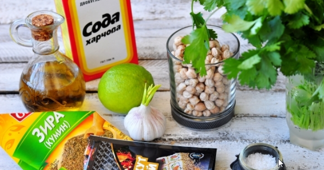 Израильский рецепт приготовления традиционной закуски еврейской кухни - хумуса из нута. Блюдо подходит для поста. Ингредиенты Нут - 1 стакан Сода - на кончике ножа Кунжут - 50 г Зира - 0,5-1 ч.л. Масло оливковое - 5-6 ст.л. Чеснок - 2 зубчика Кинза - 0,5 пучка Лимонный сок - 2-3 ст.л. Соль и перец ч.м. - по вкусу Красная паприка - 0,5 ч.л. Пошаговый рецепт с фото Если вы хотя бы раз были в гостях у родственников в Хайфе, Тель-Авиве, Эйлате или Нацерете, то в закуску по имени Хуммус вы влюбитесь на всю жизнь, всерьез и надолго - уверяю вас. Это вкусно всегда, при любых обстоятельствах и при любой компании. Для приготовления хумуса по-еврейски возьмите продукты по списку. Нут нужно замочить в холодной воде на ночь. Залить нут свежей холодной водой, добавить соду на кончике ножа и отварить до готовности, в зависимости от сорта нута это займет от 30 минут до 1 часа. Пока варится горох, приготовим пасту тахини (тхину). Она безумно дорого стоит, а приготовить ее в домашних условиях очень пр