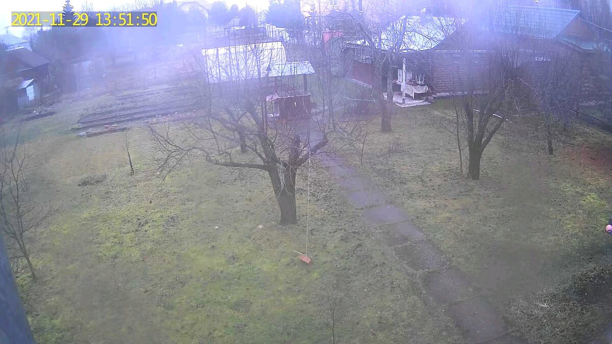 Приветствую! Прошёл месяц с момента установки автономной камеры видеонаблюдения, и уже можно сделать кое какие выводы. В целом, камера работает хорошо, к ней вопросов нет, приём 4G устойчивый, два деления постоянно, а иногда и все деления появляются. Солнечная панель тоже справляется, но здесь есть одна проблема - погода в Подмосковье. Последние полторы недели были пасмурными и естественно, аккумуляторы не заряжались, хватало их только на то, чтобы показать что камера онлайн. А вот чтобы запустить картинку с неё, заряда оказалось не достаточно. Вот последний кадр, который удалось загрузить, перед тем как она ушла в оффлайн Всё! Больше недели она висела без дела... Я уже собирался ехать на дачу, чтобы протянуть к ней розетку(как оказалось, у нас есть возможность запитать одну розетку, не подключая весь дом)но тут случилось чудо. Последние три дня, погода стояла очень солнечная, но только на третий день, панели удалось зарядить аккумуляторы чтобы появилась картинка. Радует то, что её не
