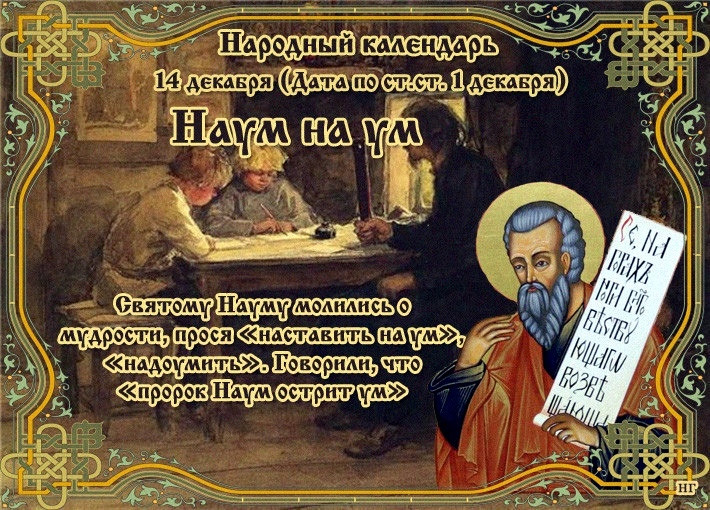 ВТОРНИК (14 декабря). Седмица 26- я по Пятидесятнице. Постный день. Рождественский пост. Прор. Нау́ма (VII в. до Р. Х.).