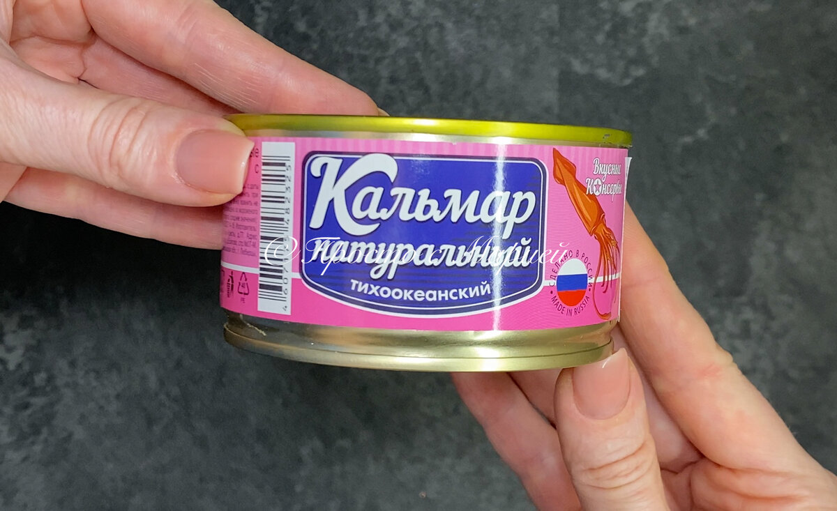 Когда нужно быстро, ярко и вкусно, на ум сразу же приходит именно этот салат. Привет, друзья! Вы на канале «Просто с Марией», и сегодня я хочу поделиться с вами интересным вариантом приготовления одного из самых популярных на сегодняшний день салатов. Обычно хозяйки готовят его с крабовыми палочками, и я тоже готовила именно так, пока не попробовала заменить палочки консервированными кальмарами. Получилось очень вкусно! Варить здесь ничего не нужно, выкладывать слоями тоже не требуется, да ещё и не надо ждать, пока салат настоится. Нарезал, смешал и готово. Отличный вариант на скорую руку, который ничуть не уступает сложным, многокомпонентным салатам. Берите рецепт на заметку! Приступаем к приготовлению. Открываем баночку с кальмарами, жидкость сливаем, а сам морепродукт нарезаем тонкой соломкой. Если вы не любите консервированные продукты, то можно сварить кальмаров самостоятельно. Получится очень вкусно, но времени, конечно, нужно будет потратить больше. Перекладываем кальма