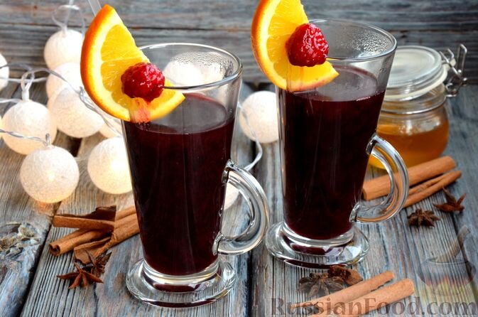 Горячий глинтвейн из красного вина и фруктового сока – отличный напиток для холодных зимних вечеров. В этом рецепте красное вино дополнено малиновым пюре, ягодами малины, апельсином и пряностями. Такой горячий зимний напиток согреет и повысит настроение в любой компании. Вино красное (полусухое или сухое) - 750 мл (1 бутылка) Малиновое пюре - 250 г Малина замороженная - 150 г Апельсин - 1 шт. (250 г) Мёд - 80 г Бадьян (анис) - 3 звёздочки Перец душистый горошком - 2 ч. ложки Гвоздика сушёная - 1-2 ч. ложки Корица - 3 палочки Розмарин сушёный (или свежий) - 0,5 ч. ложки 1) Вино для глинтвейна возьмите качественное, от его вкуса очень сильно зависит вкус готового напитка. Лучше использовать сухие или полусухие красные вина с небольшим содержанием сахара.
