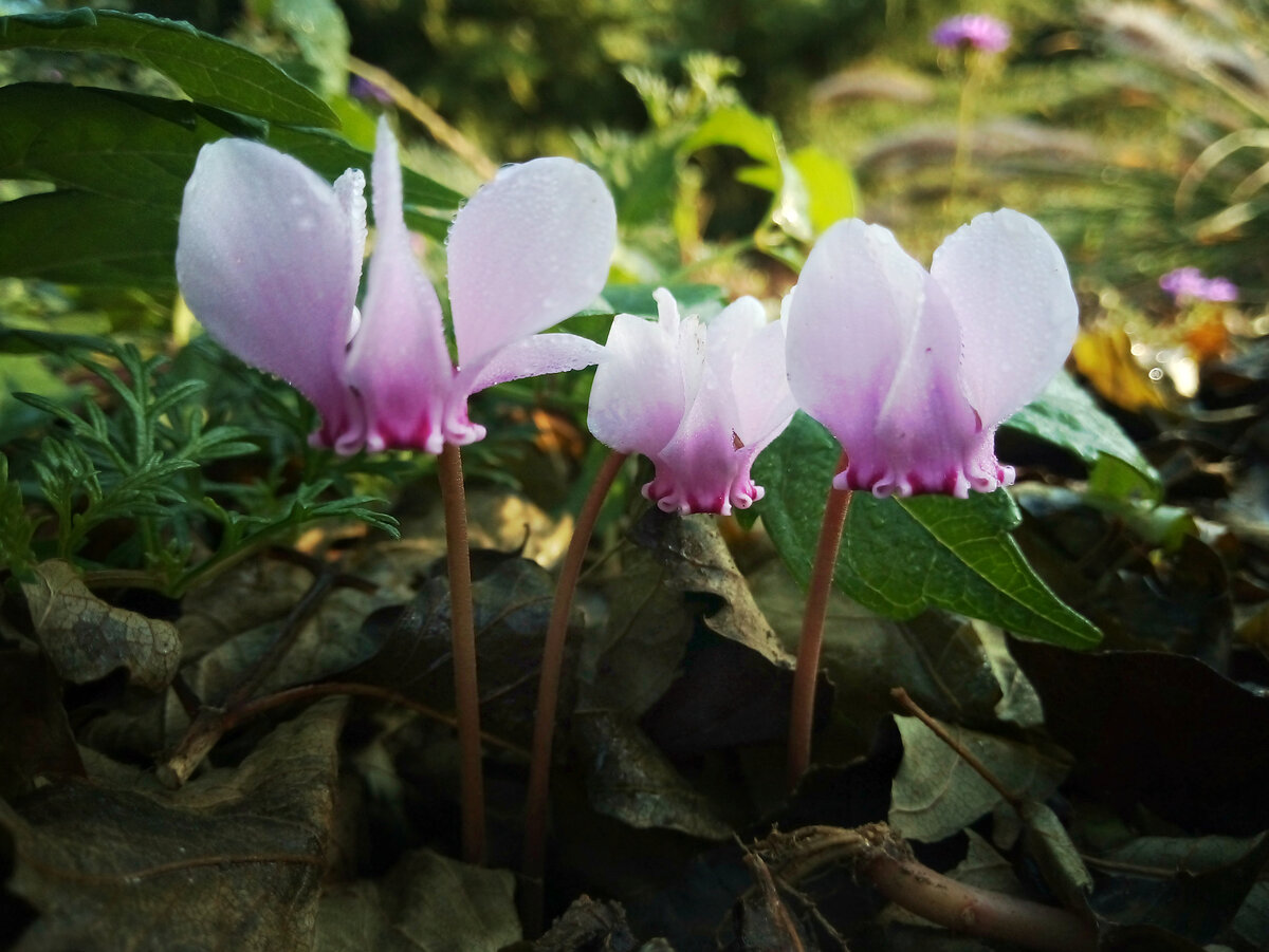 В естественной среде цикламены произрастают на Юге Европы, на побережье Средиземного и Черного моря, в Некоторых областях Африки, на Кавказе, в Крыму. Это достаточно тепло- и светолюбивые растения, наиболее комфортно чувствующие себя в под кронами деревьев и кустарников в ажурной полутени, а также на каменистых альпийских горках. Не любят сквозняки и палящие солнечные лучи. Пишется, что оптимальная температура для цикламенов 17-20 градусов тепла. Если показатели значительно превышены, то растение сбрасывает листву и сокращает период цветения.