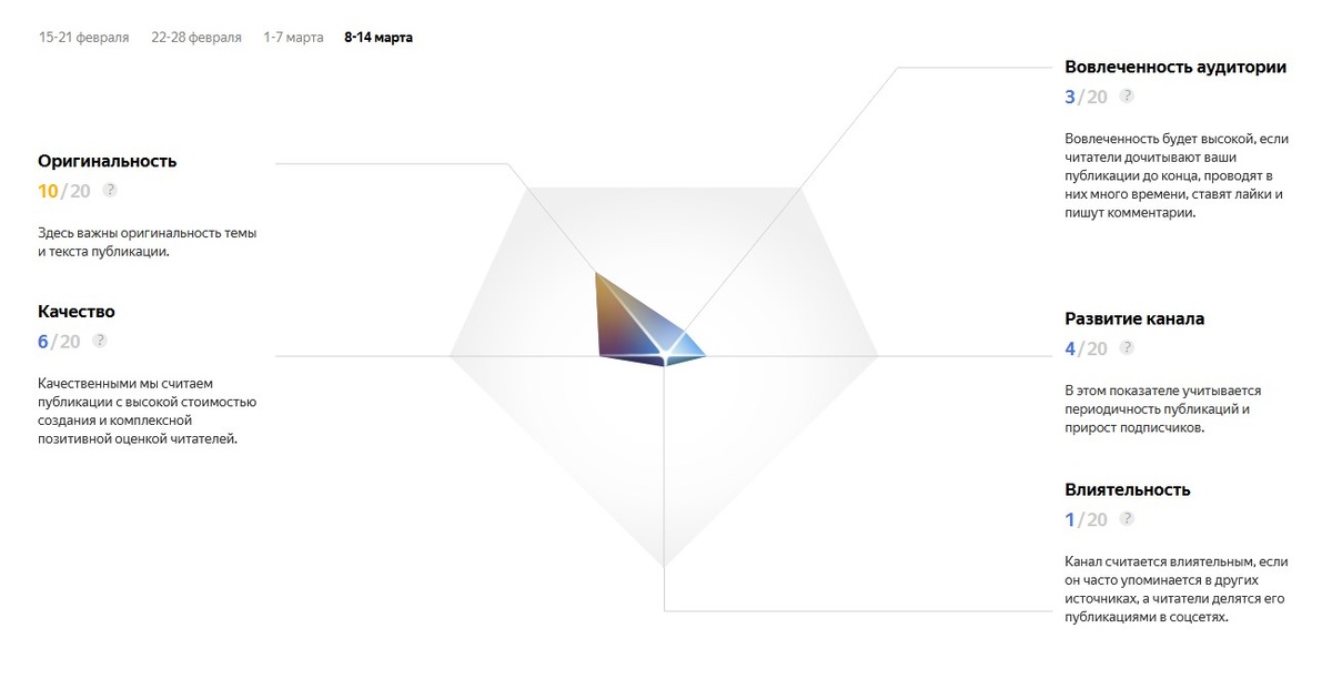 Карма: в среднем около 20/100, самый большой показатель - оригинальность - 10 из 20.