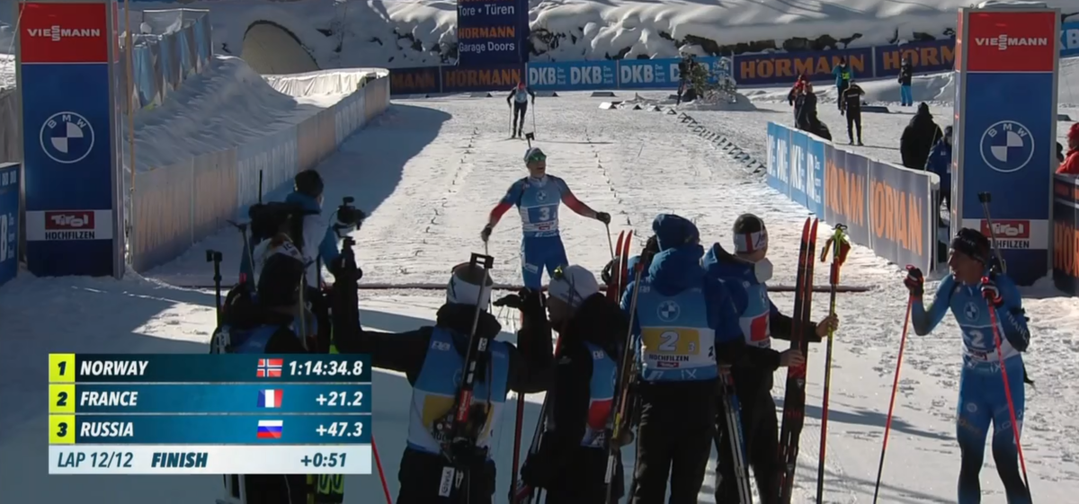 Биатлон. Мы снова третьи! Мужики вытащили эстафету со штрафным кругом и лучшим ходом Латыпова. (Видео)