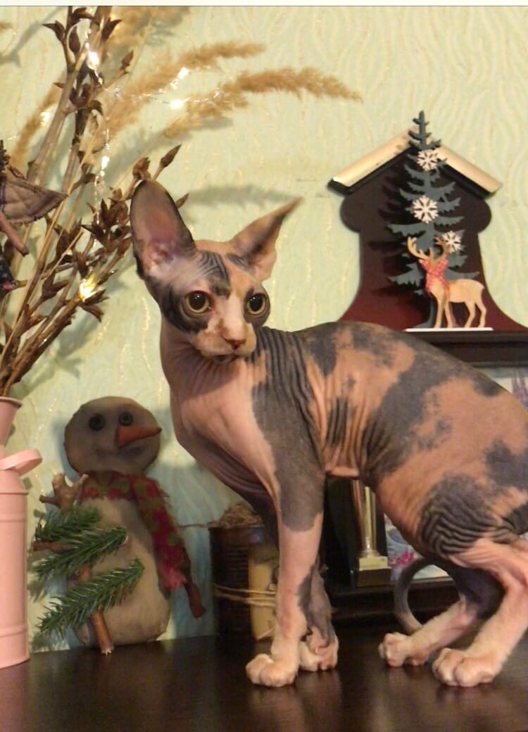 Наша девочка стала немножко старше, сегодня Монике исполнилось 5 месяцев. Она меняется и растет на глазах. За месяц прибавила 400г, теперь весит 1,6 кг. Моня стала гораздо спокойней, теперь она меньше бегает, а больше спит. Неизменным остался только ее аппетит. Из всего съедобного что есть в доме она равнодушна только к яблокам. Недавно мы опробовали новую переноску, ездили с Моникой в гости в другой город. В машине находится в будке она отказалась и всю дорогу просидела у меня на руках. В поездке Моня вела себя прилично, с интересом рассматривала проезжающие мимо машины, а когда ей это занятие надоело она уснула. В гостях, где мы были, тоже живут две кошки. При встрече с ними Моника грозно выгнула спину, рычала и шипела- все как учила ее Ариша. Хозяйские звери такого лысого чуда еще не видели, поэтому решили держаться от нее подальше. Она, как королева восседала в своей будке или переходила из рук в руки наслаждаясь комплиментами. После поездки Моника переноску полюбила. Теперь она ст
