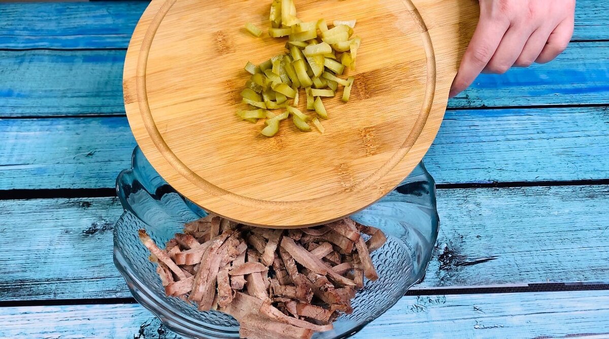 Попробуйте сделать также - вкус получается ярче и насыщеннее! Салат "Самый Вкусный" Ингредиенты: Говяжий язык - 300 гр. Маринованные огурцы - 2 шт. Лук, морковь - по 1 шт. Яйца - 2 шт. Чеснок - 1 шт. Молоко - 2 ст. л. Соль и перец по вкусу Майонез для заправки Способ приготовления: 1. Язык и маринованные огурчики нарезаем соломкой.