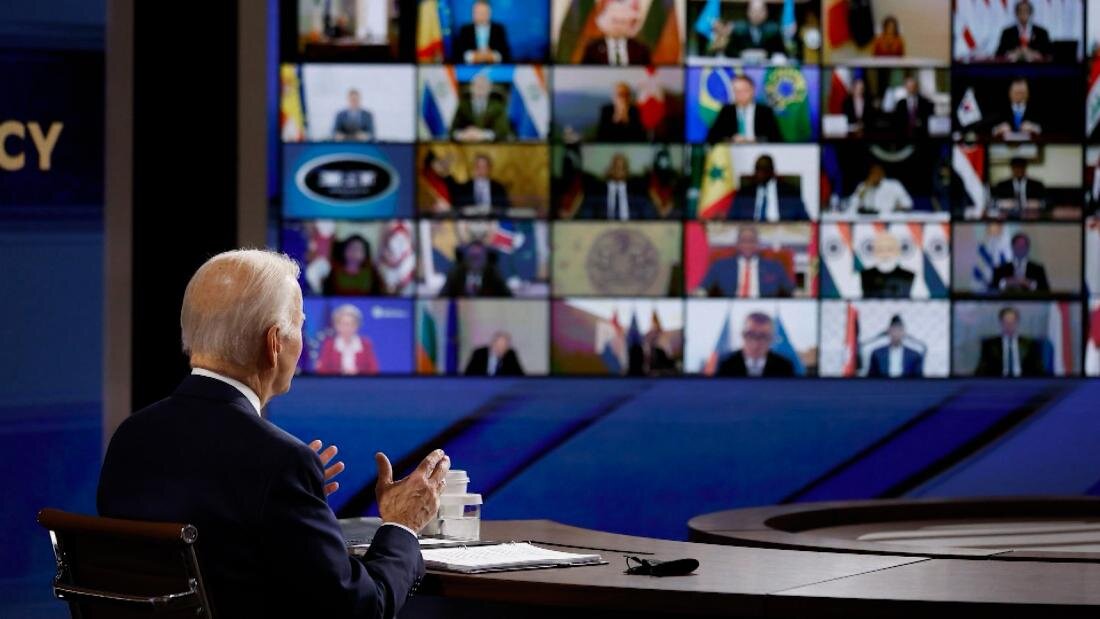 10 декабря, после переговоров с президентом России В.В. Путиным, Байден провел "Саммит за Демократию". На этот саммит были приглашены руководители 110 стран. Те страны, по оценкам администрации, которые соответствуют их критериям.