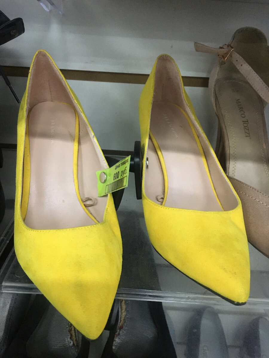 Всем привет! Меня зовут Маша. Я из Нижнего Новгорода.Как то гуляя по магазинам я увидела вывеску «секонд-хенд» и решила зайти ради любопытства. Теперь это мое хобби. Никогда не знаешь что найдешь. Обзор из Мегахенд на Нартова, скидка 60% Кому туфельки к празднику? Найдётся всё Желтые туфли под замшу. Размер 37, цена со скидкой 240 рублей В праздник хочется блистать и блестеть. И туфельки подходящие найдутся. Новые. Размер 36, цена со скидкой 480 рублей Ботильоны, похоже на натуральную кожу, 680 рублей со скидкой Мокасины. Размер 39, цена со скидкой 320 рублей Туфли с ремешком, низкий каблук. Размер 37, цена со скидкой 440 рублей Оранжевые туфли. Размер 39, цена со скидкой 300 рублей Бежевые лаковые. Размер 36, цена со скидкой 400 рублей Комбинированные босоножки. Размер 38, цена со скидкой 380 рублей Кеды, цена со скидкой 480 рублей Кроссовки. Размер 40, цена со скидкой 760 рублей Черные. Размер 41, цена со скидкой 520 рублей Белые блестящие на маленьком каблучке. Цена