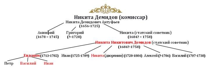 История Демидовых — это отпечатавшаяся в биографиях история большого Дела. Это большое дело никак не вмещалось в одну человеческую жизнь и поэтому естественно рождалась проблема отцов и детей. Демидовы третьего поколения утратили связь с городской посадской культурой Кем они стали, получив всё, о чем когда-то мечтали отцы и деды, чем владели? Но это уже другая история.