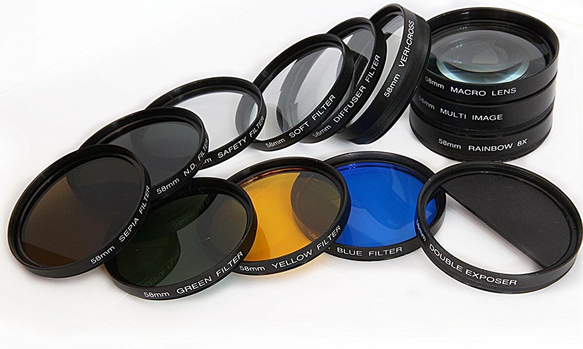 Фотографический фильтр-это насадка, которая позволяет пропускать определенные виды света и способна уменьшать или блокировать другие нежелательные источники света. Сам термин "фильтр" действительно означает все, что каким-либо образом изменяет поступающий свет и включает в себя: поляризационные экраны, призмы с несколькими изображениями, насадки крупным планом, фильтры мягкой фокусировки, фильтры нейтральной плотности (ND), градуированные фильтры ND и цветные фильтры для черно-белой фотографии. В основном они бывают круглой формы и разного диаметра под разные размеры объектива.