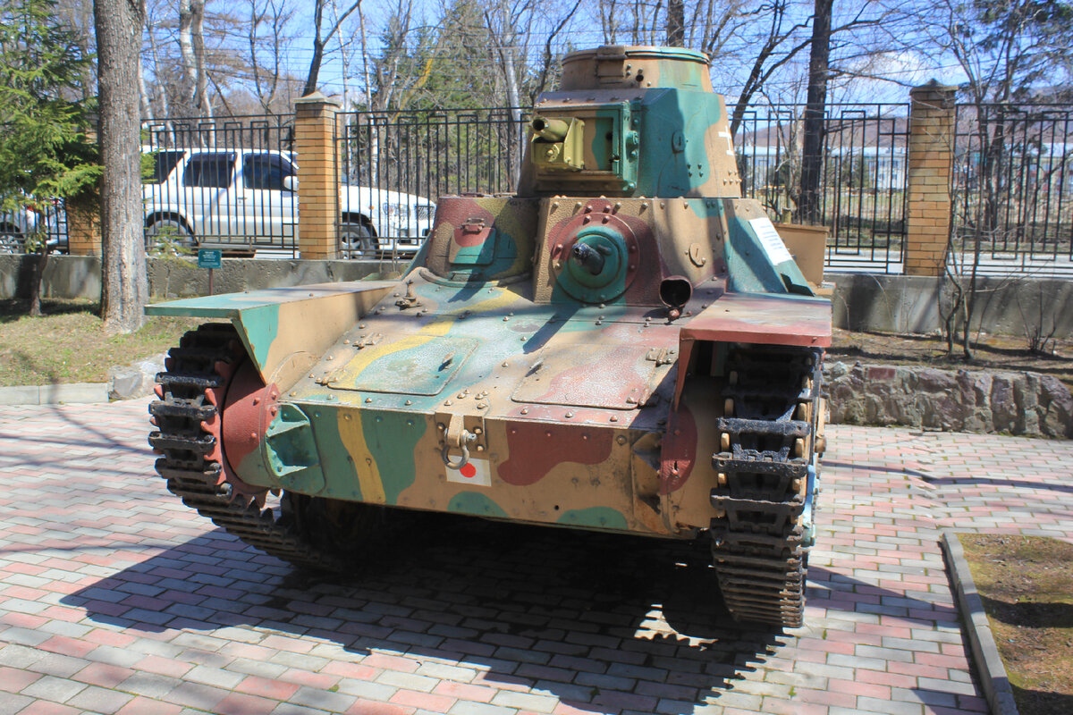Вокруг музея выставлены всякие исторические штучки и находки. Самая яркая - японский танк типа 95 «Ха-го». Его привезли сюда с курильского острова Шумшу, где он участвовал в боях против советской армии. В 2010-м машину привезли и поставили в музейном сквере.