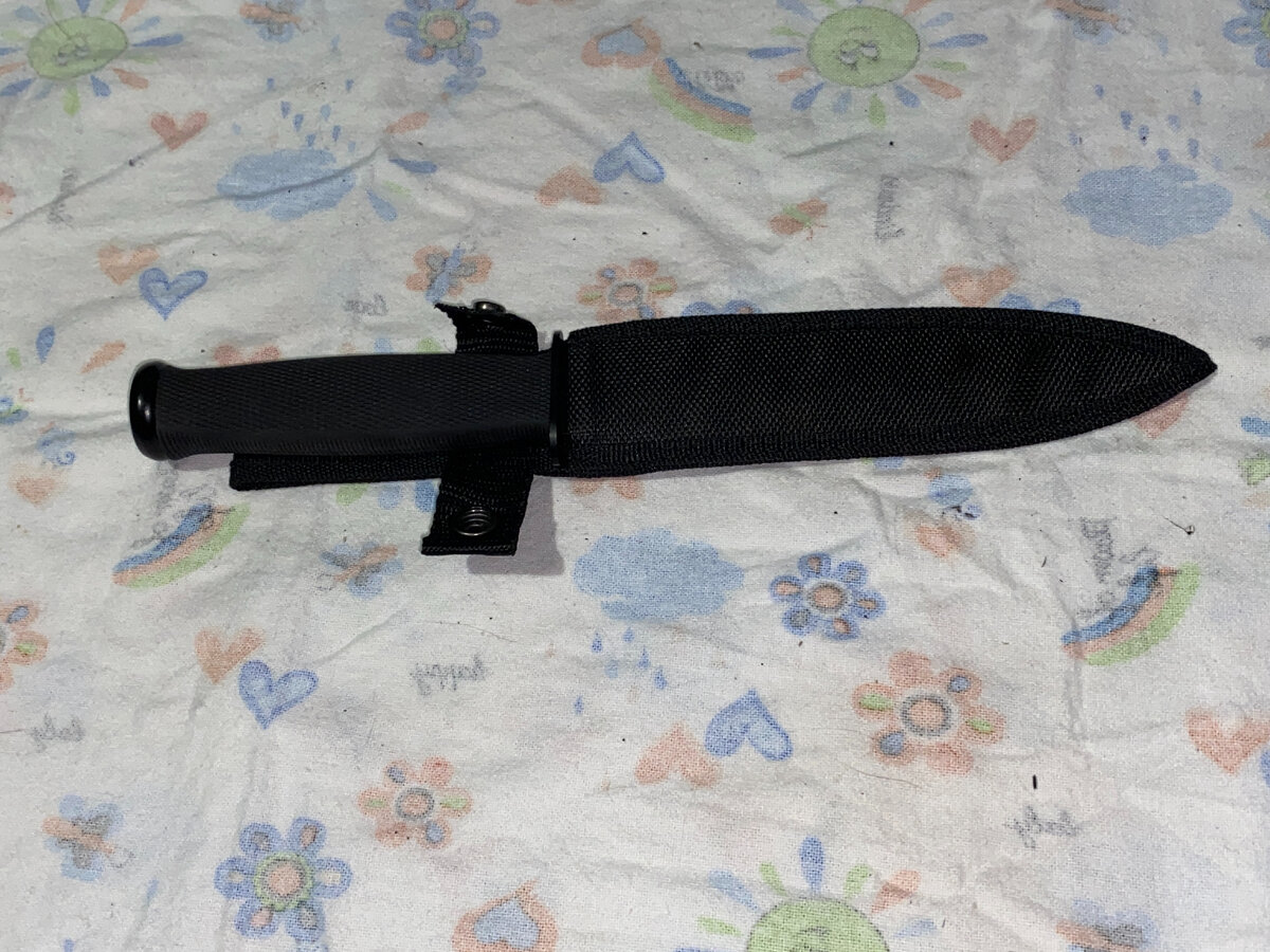 Всем привет. Это заключительная часть обзора ножей, которые принадлежат бойцам одного из подразделений спецназа. Самого настоящего. И да - статья чисто информативная и развлекательная! Купил он его за свои собственные деньги, непосредственно для службы. Ответ на вопрос, мол есть более функциональные и т.д.: для функционала, они носят мультитулы. Будет отдельный обзор, для каких целей они их приобретали, а пока просто полюбуйтесь на фото этого красавца: У него, самые простые ножны, из всех выше представленных ножей. Но сам нож - выглядит просто шикарно, по моему субъективному мнению: ТТХ здесь не будет, ибо просто так его не купить (вроде). Рукоять - прорезиненная, с вот такой вот текстурой поверхности: Серейторная заточка с двух сторон, с разным шагом: Ну и кому интересно - клеймо: Есть видеообзор, где представлены все ножи сразу, в том числе и этот: По сути, задача у таких ножей одна - колоть. А так, поговорив с ребятами по поводу - мол, на кой такой? В двух словах был получен ответ: