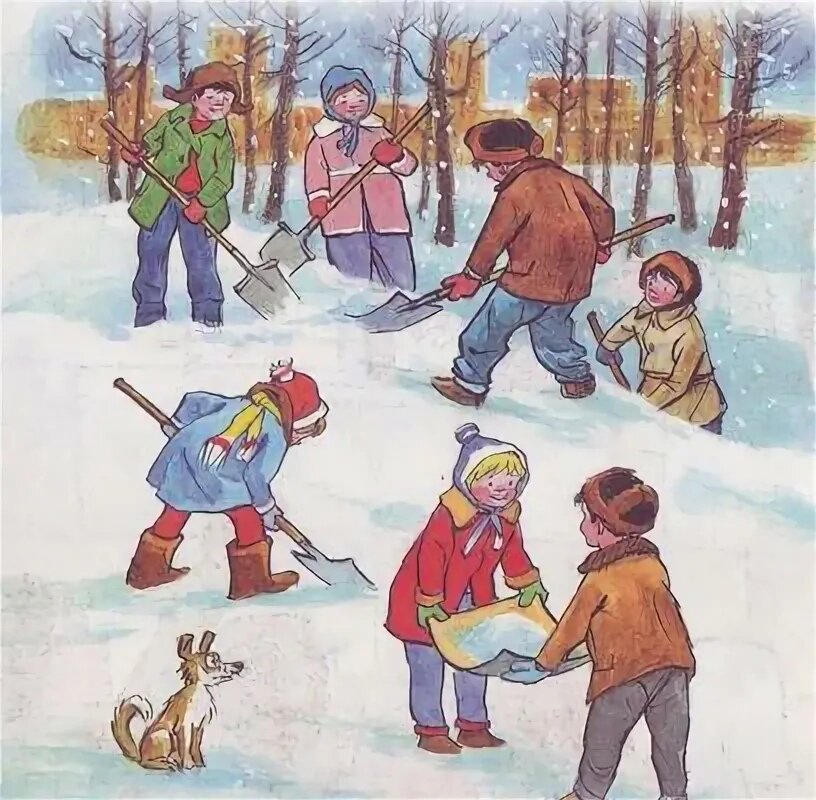 Митька отряхнулся, печально вздохнул и сам стал расчищать дорожки…