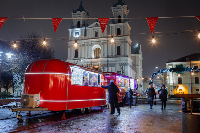 Этой зимой жителям Гродно не придется далеко ехать за волшебным настроением. Рождественский маркет, зимний бар с теплыми коктейлями, фудкорт, большая елка и праздничные забавы ждут всех жителей города на Зімовым Фэсце. В этот уикэнд на Советской площади, несмотря на ненастную погоду, открылась рождественская ярмарка, которая будет радовать гостей аж до 9 января. Посмотрите наш фоторепортаж о том, как стартовал зимний фестиваль. Зімовы Фэст в стиле европейских рождественских ярмарок впервые прошел в 2020 году. Тогда в самом сердце Гродно развернулся целый праздничный городок с деревянными домиками, яркими декорациями, разнообразным фудкортом, рождественским маркетом, елочным базаром. В этом году успешный формат решили повторить и усилить. − Мы добавили участников фудкорта с интересным меню, продумали зимний коктейльный бар с авторскими напитками и с нетерпением ждем всех в гости в наш сказочный новогодний городок, где творятся чудеса и исполняются заветные мечты, − говорят создатели про