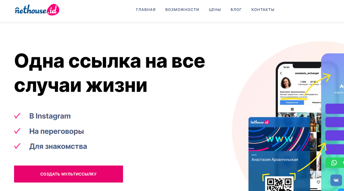 Мультиссылка или сайт для Instagram бесплатно от Nethouse