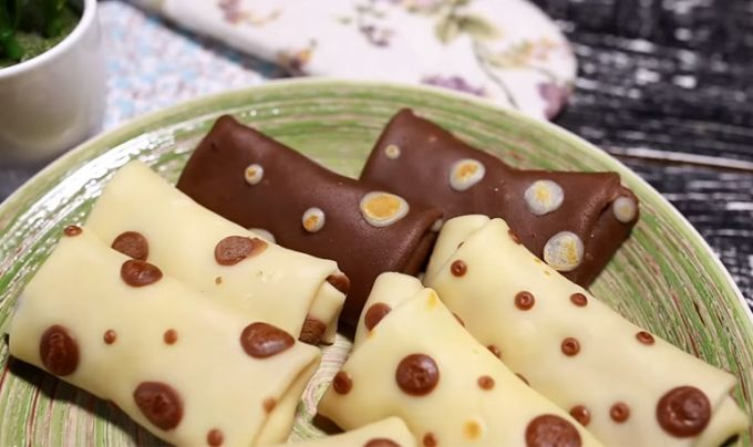 Как испечь необычные шоколадные и белые блины «в горошек»