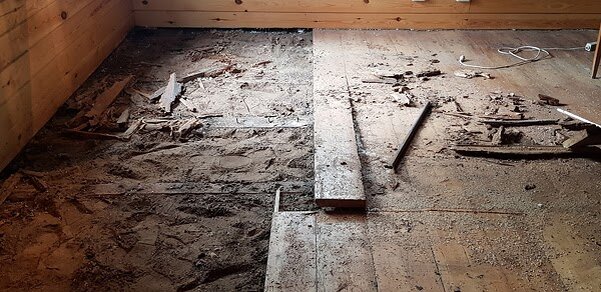 Укладка ламинированного пола в усадьбе стала настоящей неожиданностью. Приводил в порядок превращенную в склад усадьбу для сдачи в аренду, вывез пару прицепов хлама, распихивал по разным уголкам то, что еще может пригодиться, и уже почти увидел свет в конце этого долгого туннеля. Остался угол с диваном, в который уже готовился ставить рабочий стол. Подвинув диван, понял, что настоящая работа еще только начинается – грибок сожрал пол.