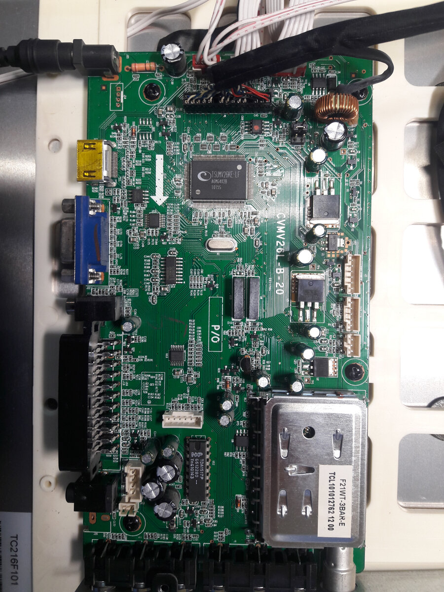 Всем здравствуйте! Сегодня у нас на ремонте телевизор Supra stv-lc2225wl с диагнозом горит зелёный светодиод, на кнопки и пульт не реаирует, нет звука и изображения. Фото майн платы. Инвертор/драйвер подсветки. Здесь применена майн плата модель cvmv26l-b-20 ремонт которой мы и будем производить. По внешним признакам всё как-бы смахивает на прошивку. Зачастую в телевизорах с такими симптомами слетает прошивка flahs/eeprom .Но у нас немного другая история. Как обычно весь ремонт начинается с замеров напряжений. Так-как блок питания у нас внешний и с него выходит 12,5 вольт под нагрузкой, то блок питания у нас отпадает. Продолжаем делать замеры напряжений на стабилизаторах установленных на плате. Что самое интересное напряжение было на всех стабилизаторах, и почти все согласно надписям на них : U2=5v, U3=3,3v , U5=3,3v и самый интересный замер мне показал U1=0,65v. Даю небольшой совет, так-же нужно замерить наличие напряжения на 8 выводе микросхемы памяти, там обычно 3.3 вольта. Так в