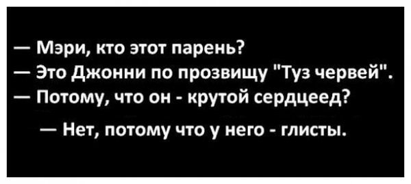 Сидит на берегу реки рыбак с удочкой. Ловит рыбу на червяка. Проплывает рядом с червяком рыба и спрашивает у него: