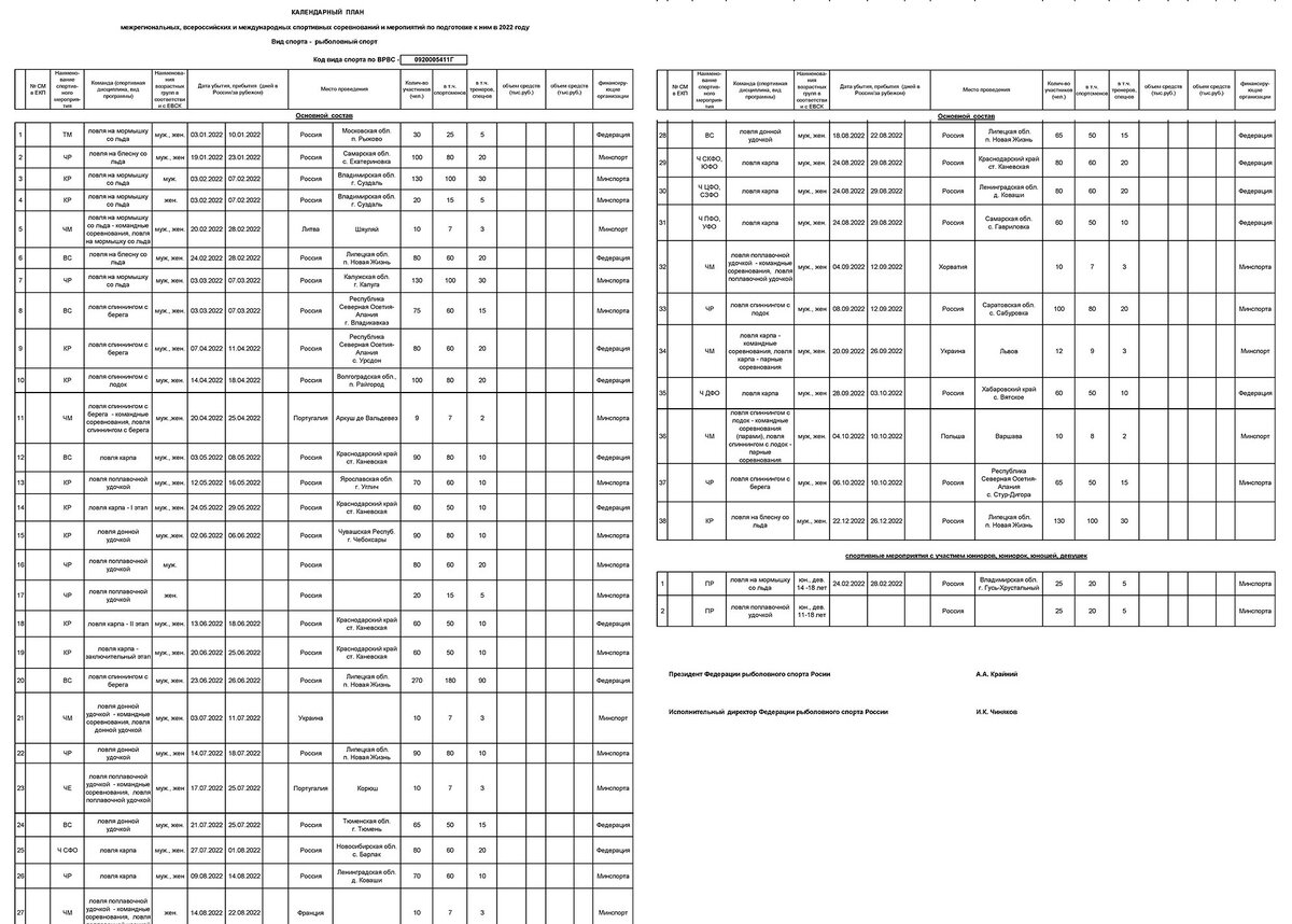Пора объявить официально! Федерация рыболовного спорта России опубликовала Проект календарного плана межрегиональных, всероссийских, и международных соревнований по рыболовному спорту и мероприятий по подготовке к ним в 2022 году. Для нас с Вами друзья интересны позиции 26 и 30! Чемпионат России и Чемпионат Центрального и Северо-Западного округов. Промо-ролик скоро выйдет....... Источник: https://youtube.com/channel/UCRZP1rQjMA1…