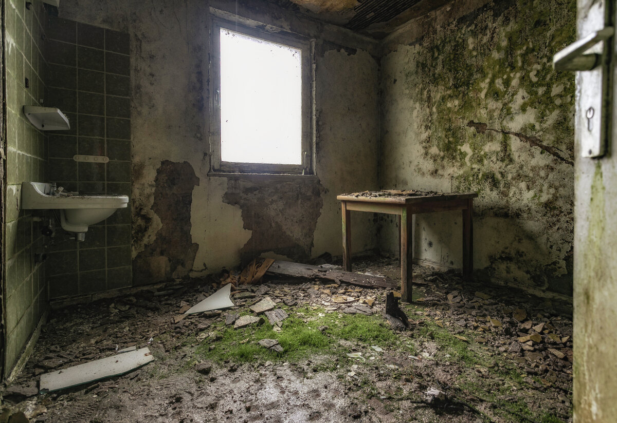 Представьте себе худший недорогой отель, в котором вы когда-либо останавливались. Просто представьте. Получилось? Так вот, место, о котором я вам расскажу сегодня - это фантастически обветшавший заброшенный отель в Германии, и он на несколько порядков хуже, того, который вы представляли. Я могу это гарантировать. Я бы сказала, что это «Ну оочень бюджетный отель». Это особая изюминка с точки зрения света и цвета. Во время нашего посещения отеля "Биосфера" мы подумали, что обнаружили возможный максимум плесени на 1 квадратный метр. Но НЕТ! Здесь плесень себя превзошла. Она расползлась во всех комнатах, на каждом этаже. Дышать без маски было практически нереально. Отель состоял из двух корпусов. Одна его часть все еще довольно неплохо сохранилась (я вам расскажу о ней немного позже). А вот другое здание полностью заросло мхом, внутри даже начали расти растения. Главный объект интереса для фотографа - ресторан. Устаревший декор дополняет чудесный яркий зеленый мох, растущий на ковре. В