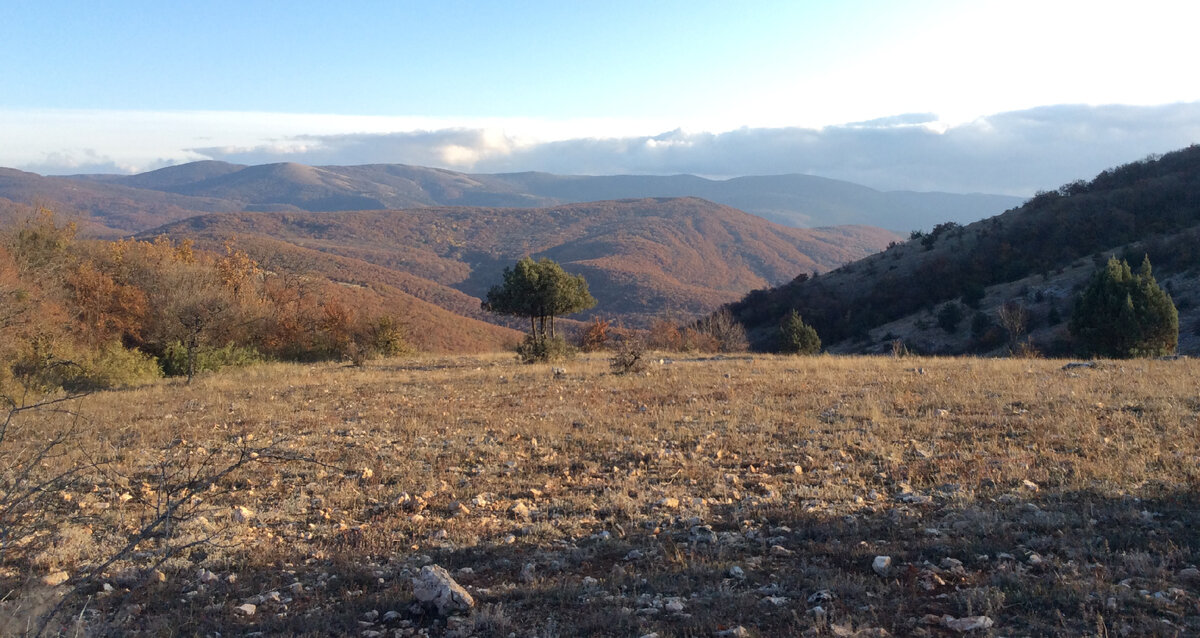 Утром я стартовал в окрестностях Севастополя, и к вечеру планировал спуститься к Соколиному. Когда стало смеркаться я был в лесу у Кутлер-Богаза. Стало очевидно, что, скорей всего, придётся ночевать вверху, отложив спуск на утро. Поэтому я решил остановиться где-то в районе Барской Поляны.