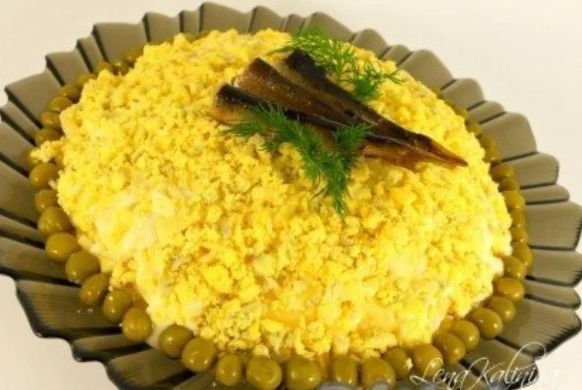 Предлагаю приготовить для праздничного стола простой, но очень вкусный слоеный салат со шпротами