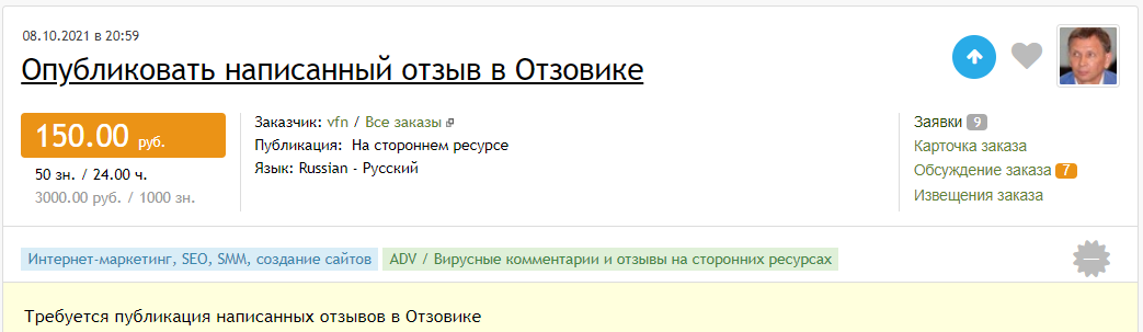 НАЧИНАЕМ ! Что по алгоритму ? А он проще простого ! https://advego.com/ Заданий достаточно, и пока будем выполнять одно, добавятся еще два. На нем мы будем поднимать от 1500 до 3000 за день. (а то и больше) Параллельно с этим, мы регистрируемся на самом Отзовике, и будем получать деньги, за просмотры наших отзывов, которые мы будем оставлять, поверьте мне , отзывы ТОЧНО будут , ибо не зря у вас заказывают отзывы ,их 100% будут смотреть , а за просмотры нам будет капать пассивная копеечка ;) https://otzovik.com/ На нем заполняем своими (или почти своими данными) чтобы получить такие привилегии как заработок. Важно: прежде чем с нулевого аккаунта брать нормальные заказы, необходимо завершить три простых задания. Делается это за пару часов. Так что не тяните с подготовкой. Поясняю: Берете заказ на Advego и де