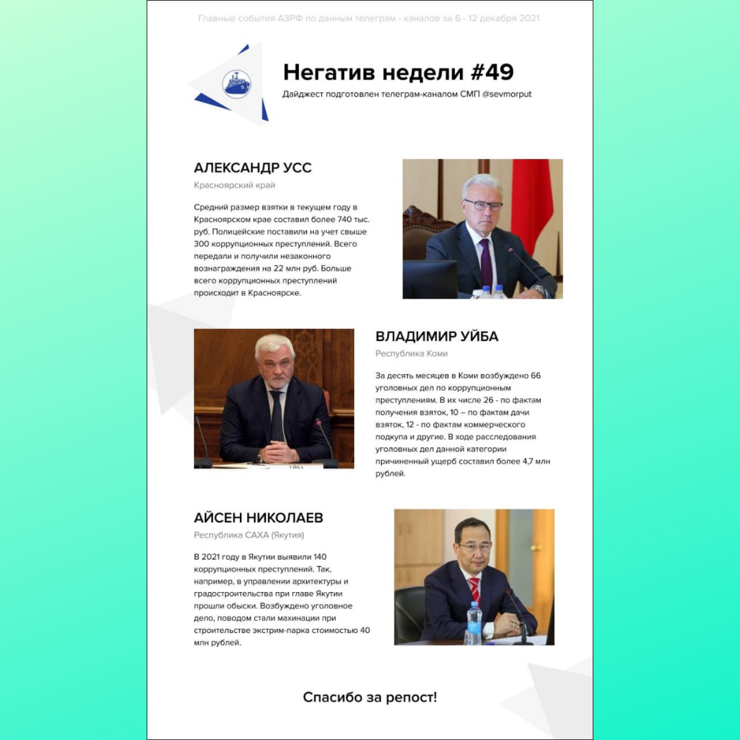 Средний размер взятки в этом году в Красноярском крае составил более 740 тыс. руб. Полицейские поставили на учет свыше 300 коррупционных преступлений. Всего передали и получили незаконного вознаграждения на 22 млн руб. Больше всего коррупционных преступлений происходит в Красноярске, Канске, Ачинске и Шарыповском районе. Самыми коррумпированными сферами оказались лесопромышленный и агрокомплексы, госзакупки и здравоохранение. Возбуждено 52 уголовных дела в отношении должностных лиц государственных органов власти и местного самоуправления.